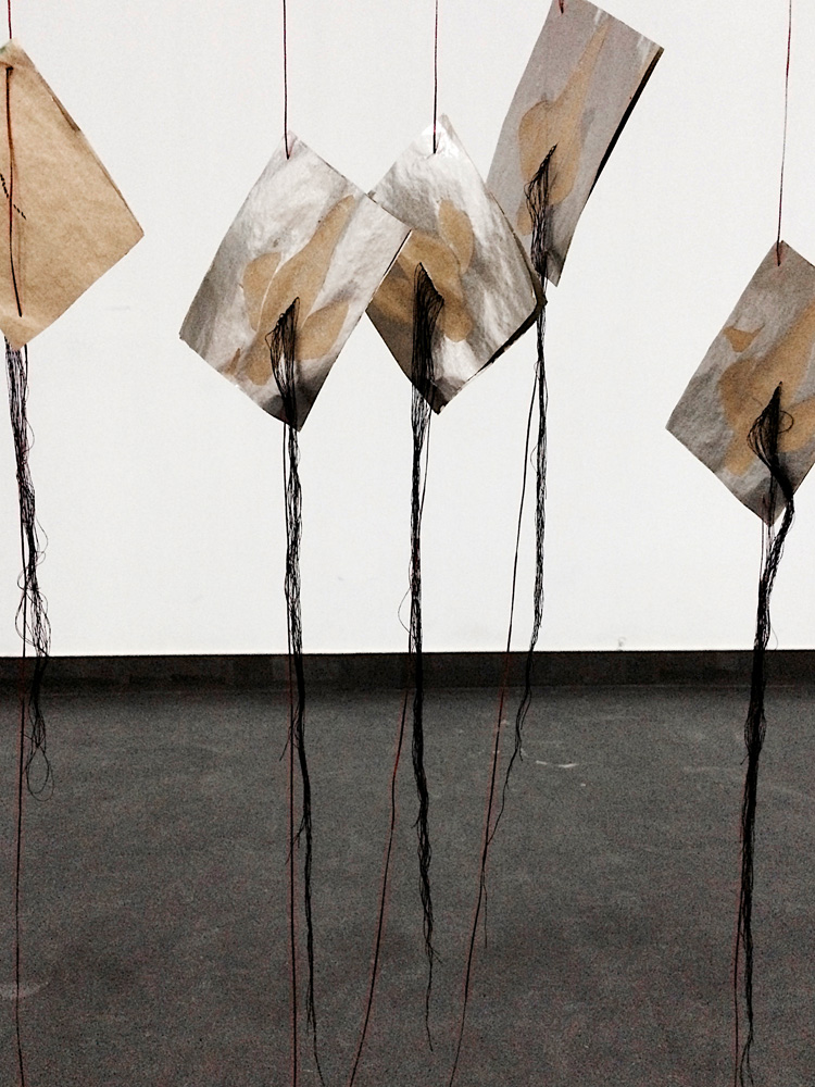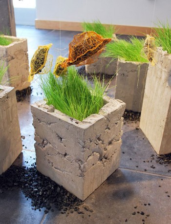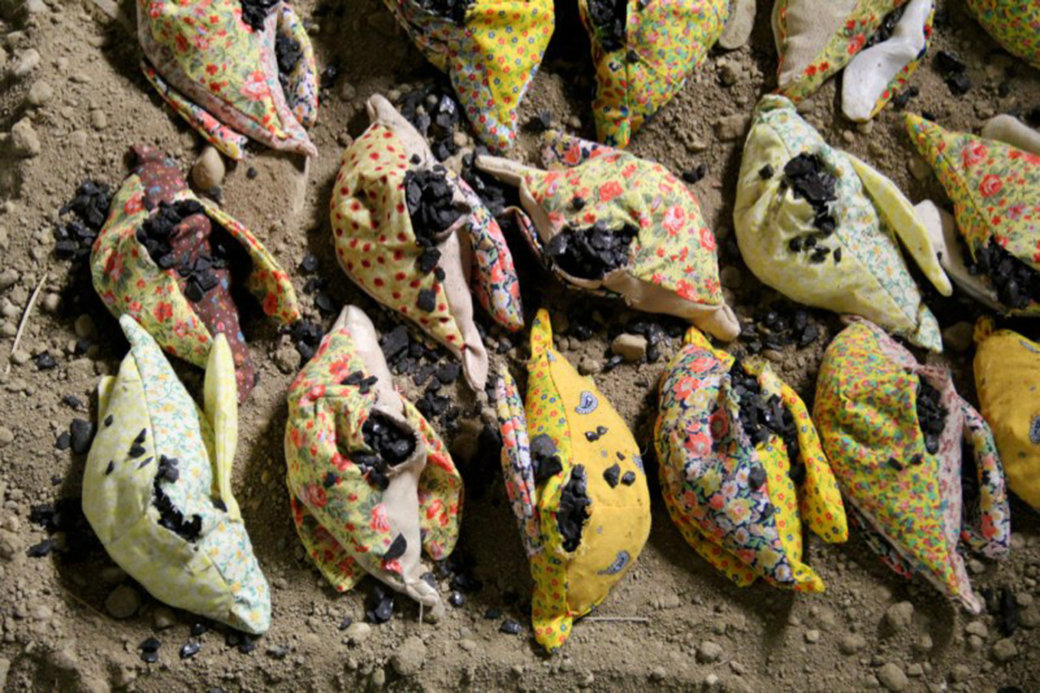 Out of the Seam, dimensions variable, thread, anthracite coal, concrete, grass, earth, 2016
