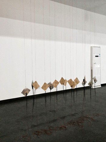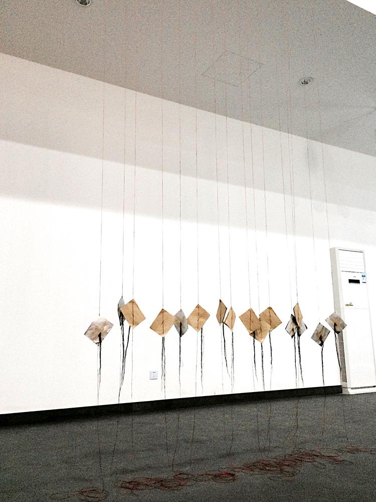 16 canaries: Tiechanggou, China: 10.26.14 Joss paper ("spirit money" burned to honor the dead) and thread. 2014.